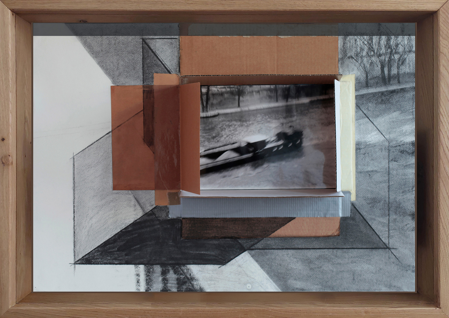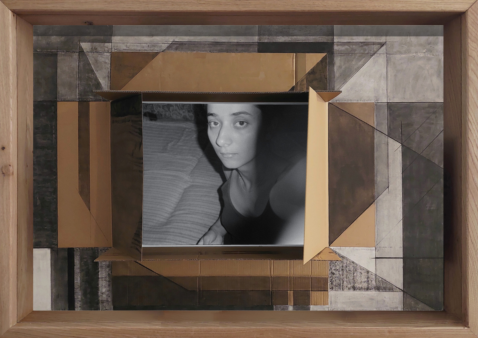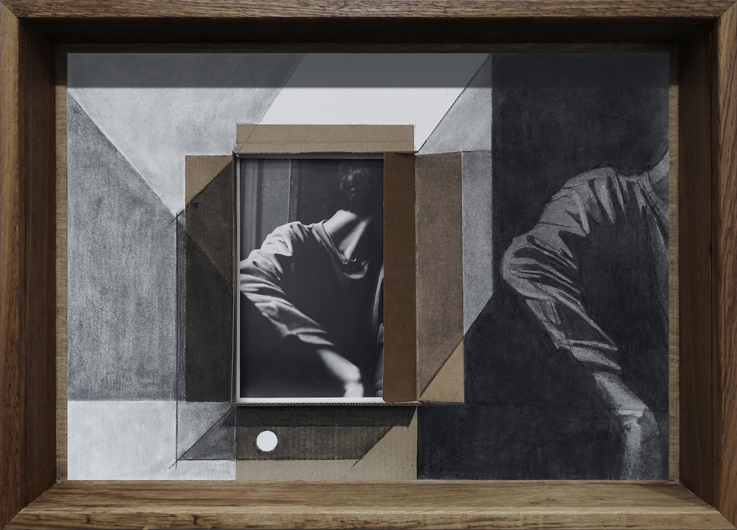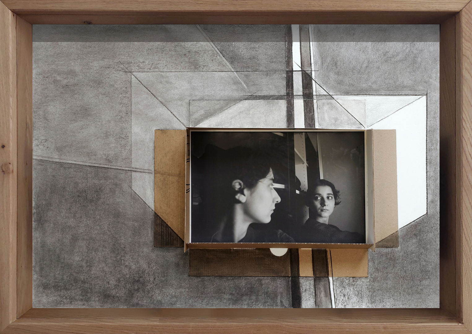 Another element I notice when looking back at the series’ development is its connection to previous projects, some dating back to my student years, when I worked with photography, drawing, and cardboard boxes for objects and installations, some even featuring movable cardboard flaps. In these early works, I find an interest in combining photography with other media or the possibility of reconfiguring a work over time, visual instruments that I further explored in Viewfinder.