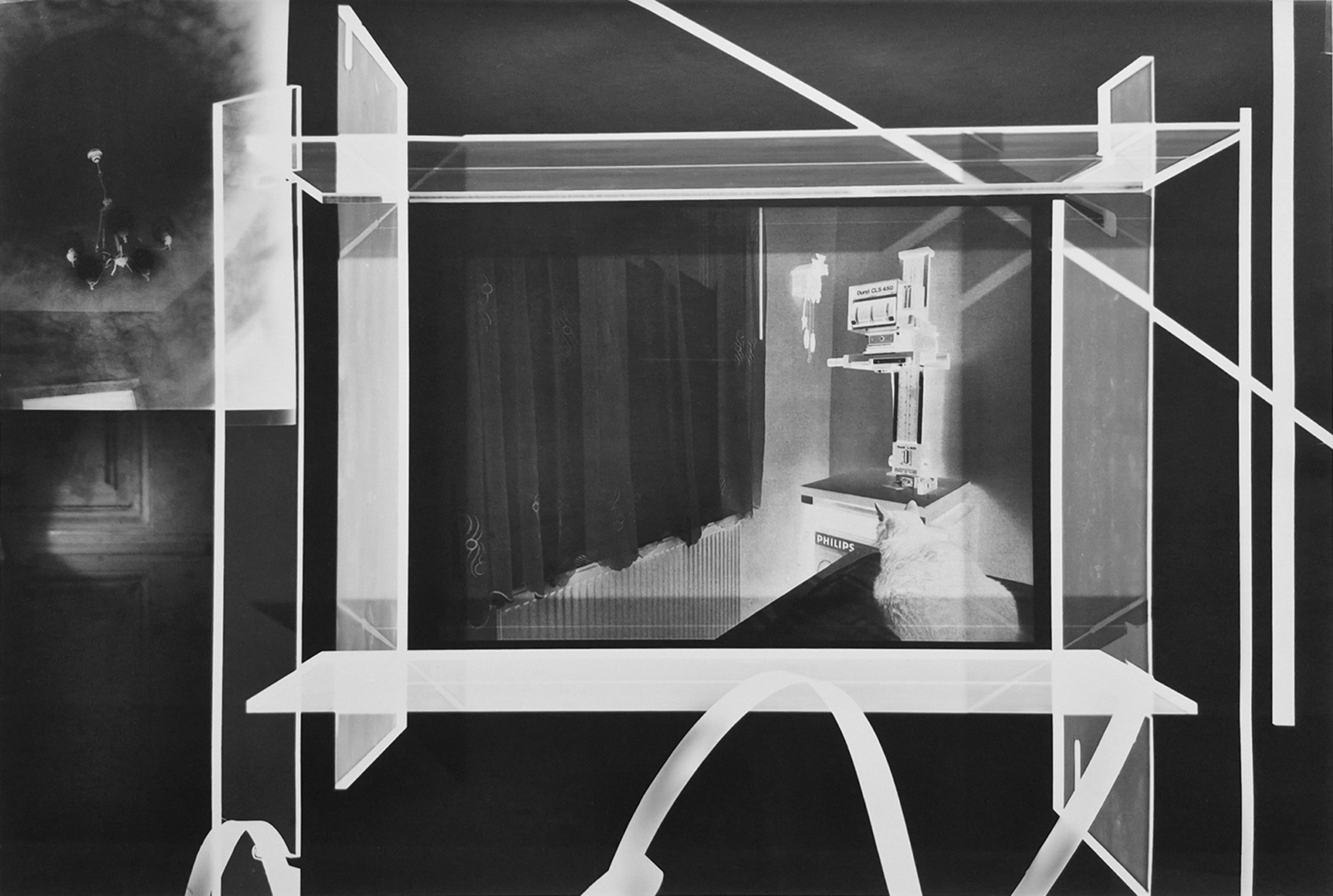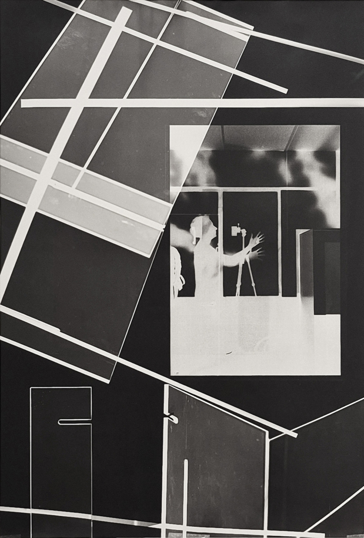 This evolution comes full circle with a return to two-dimensionality through creating photograms [2]. As part of their visual composition, we can discern the rectangular traces of the translucent mock-ups from the previous series, projected onto the photosensitive paper.